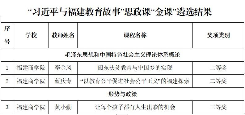 根据《中共福建省教育工委关于公布“习近平与福建教育故事”思政课“金课”遴选结果 暨教学展示活动的通知》(闽委教思〔2023〕14 号)文件精神,世界杯官网喜获二等奖2项,三等奖1项,具体如下: