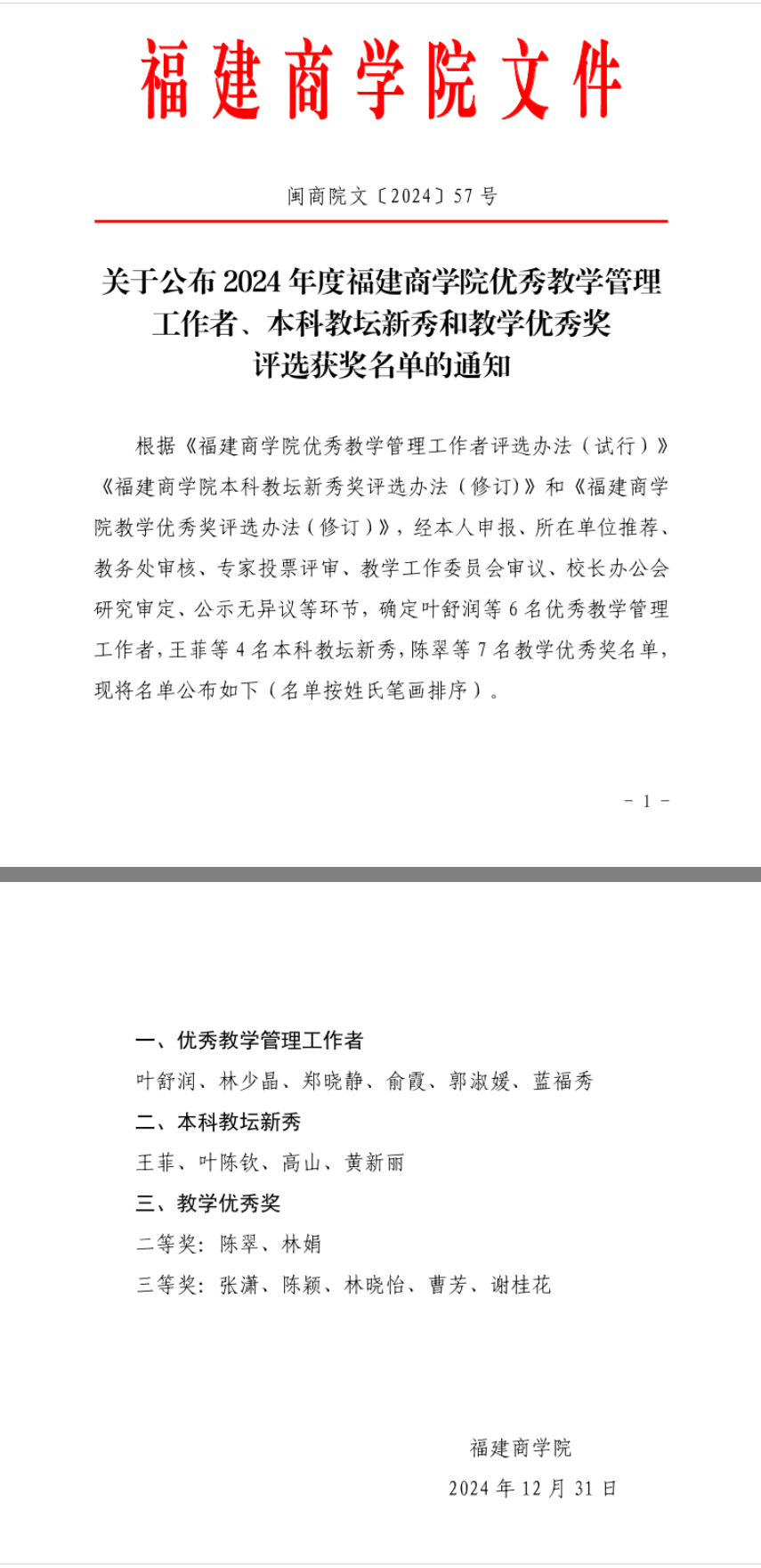 喜讯:经过评审,世界杯官网蓝福秀老师获得2024年度世界杯体育官方网站优秀教学管理工作者荣誉称号,叶陈钦老师获得本科教坛新秀荣誉称号,陈翠老师获得教学优秀奖荣誉称号。