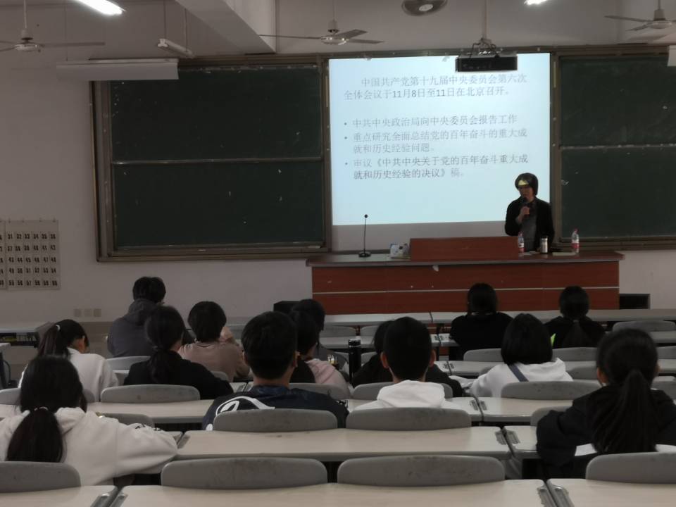 宋雪霞教授以党的百年历程为切入点,带领学子们回顾了党团结带领中国人民在百年奋斗中所取得的伟大成就与伟大变革。在讲授中,宋教授列举了中共一大、古田会议等党史上一系列重大事件,指明了学习党史的四个要点即要在了解党史重大事件中把握党的发展脉络;要在了解党史重要会议中领悟党的前进方向;要在了解党史重要人物中把握党的使命担当;要在了解党史重要地点中把握党的精神真谛,为青年大学生学习党史提供了方向指引。宋雪霞认为青年始终是我国革命、建设、改革的生力军,勉励学子们在学习百年党史中汲取奋进智慧,自觉肩负起使命与担当。