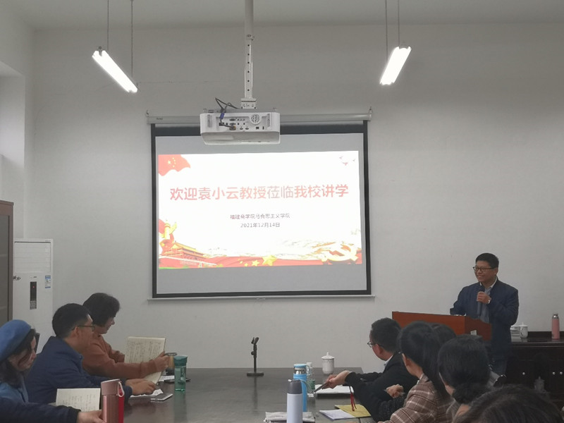 12月14日上午,福建工程学院世界杯体育官方网站院长袁小云教授应邀来世界杯官网作《学科性教学理念与思政课教学改革——聚焦”意识形态”,推动教研相长》专题讲座。校党委副书记吴访益、马克思主义全体教师参加此次讲座。