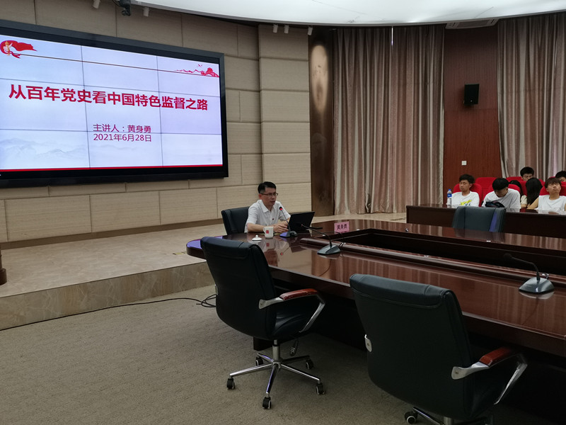 6月28日下午,校纪委书记黄身勇在连江校区明德楼视频会议室为读书社学生讲授了一堂题为“从百年党史看中国特色监督之路”的思想政治理论课。