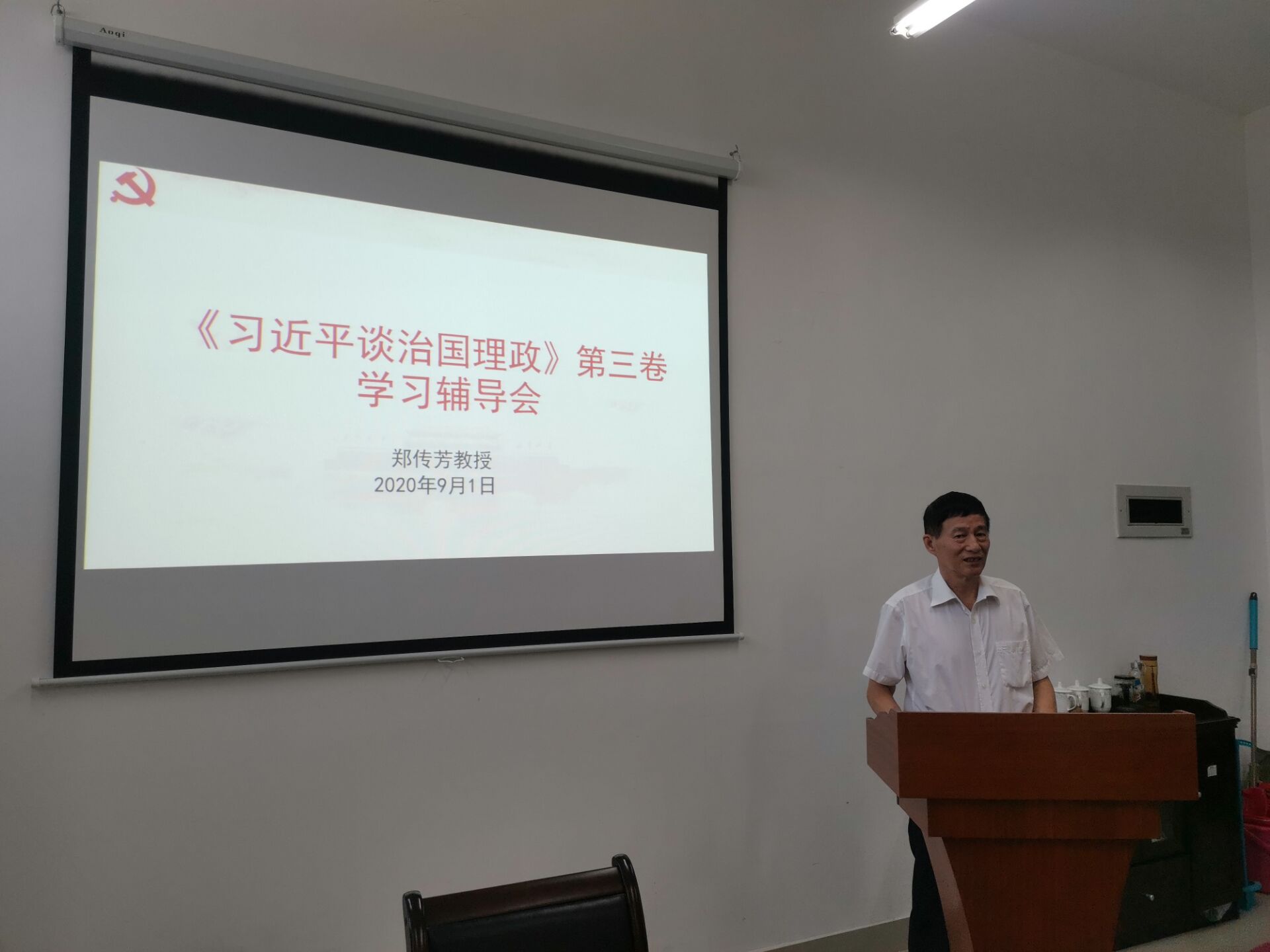 2020年9月1日,福建师范大学郑传芳教授应邀莅临世界杯官网举办学习《习近平谈治国理政》第三卷讲座,世界杯体育官方网站全体教师聆听了此次讲座。