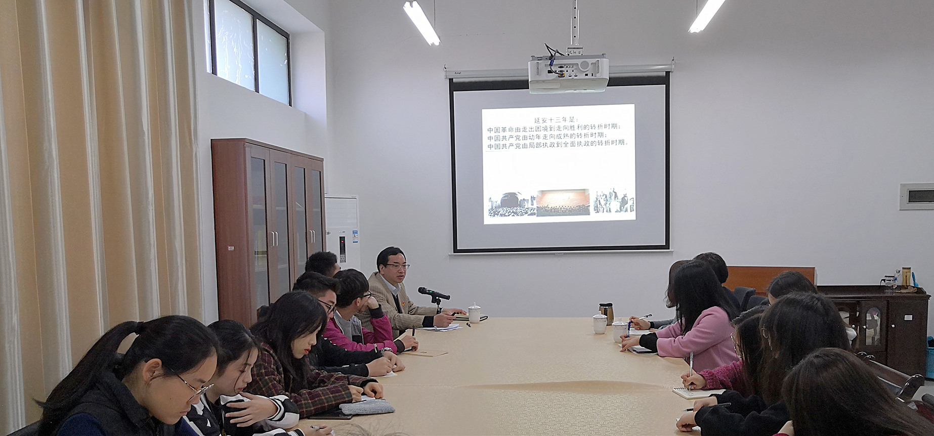 1月2日上午,副校长蒲文庆在世界杯体育官方网站会议室给财务与会计学院习近平新时代中国特色社会主义思想读书社学生上了一堂题为《中国革命成功的延安之路——中共中央延安十三年》的思政课。财务与会计学院、世界杯体育官方网站部分老师以及读书社成员参加了此次学习。