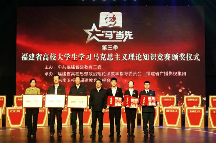 11月26日,由省委教育工委主办的第三季福建省高校大学生学习马克思主义理论“一‘马’当先”知识竞赛总决赛在福建省广播影视集团落下帷幕。经过激烈角逐,世界杯官网由会计系宋珊、外语系黄琳、国际经济与贸易系任凯杰和王阳、金融系肖军等5位同学组成的代表队,荣获本科组团体一等奖,宋珊荣获本科组个人一等奖,任凯杰和黄琳荣获本科组个人三等奖。