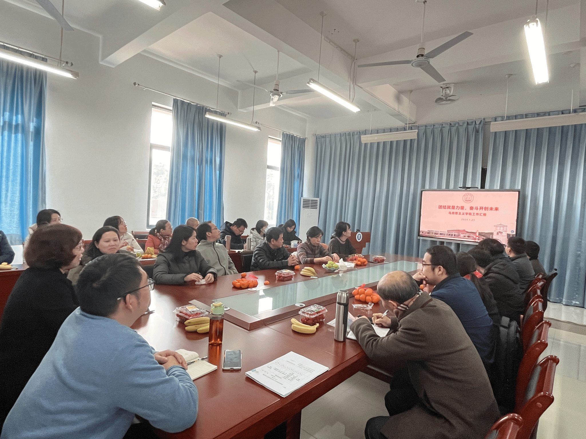 2024年1月23日下午,世界杯官网召开本学期期末工作安排会议暨杨凡老师荣休欢送会。世界杯体育官方网站全体教师参加。