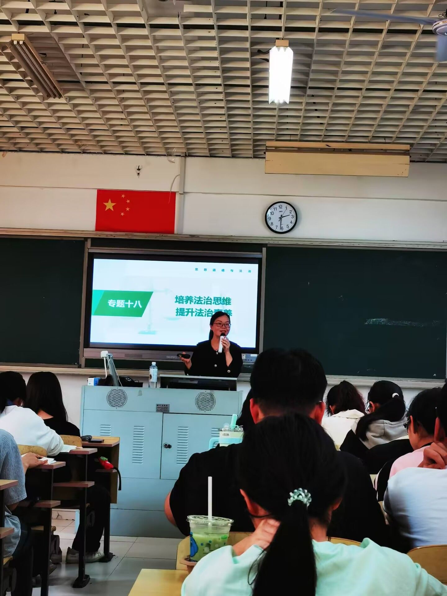 5月17日下午,世界杯体育官方网站思想道德与法治教研室蓝福秀老师在马尾校区至善楼102教室开展题为“培养法治思维 提升法治素养”的数智化教学展示,学院教师及相关班级学生到场观摩。