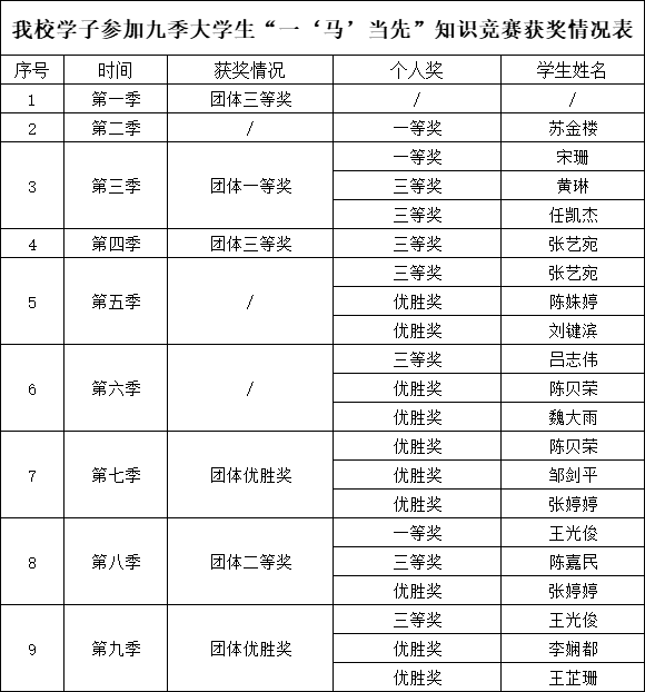 9月27日,由省委教育工委主办的第九季福建省高校大学生学习马克思主义理论“一‘马’当先”知识竞赛总决赛圆满结束,世界杯官网选手在比赛中喜获佳绩。世界杯官网学子连续九季参加大学生“一‘马’当先”知识竞赛均有获奖,成绩位居全省高校前列。