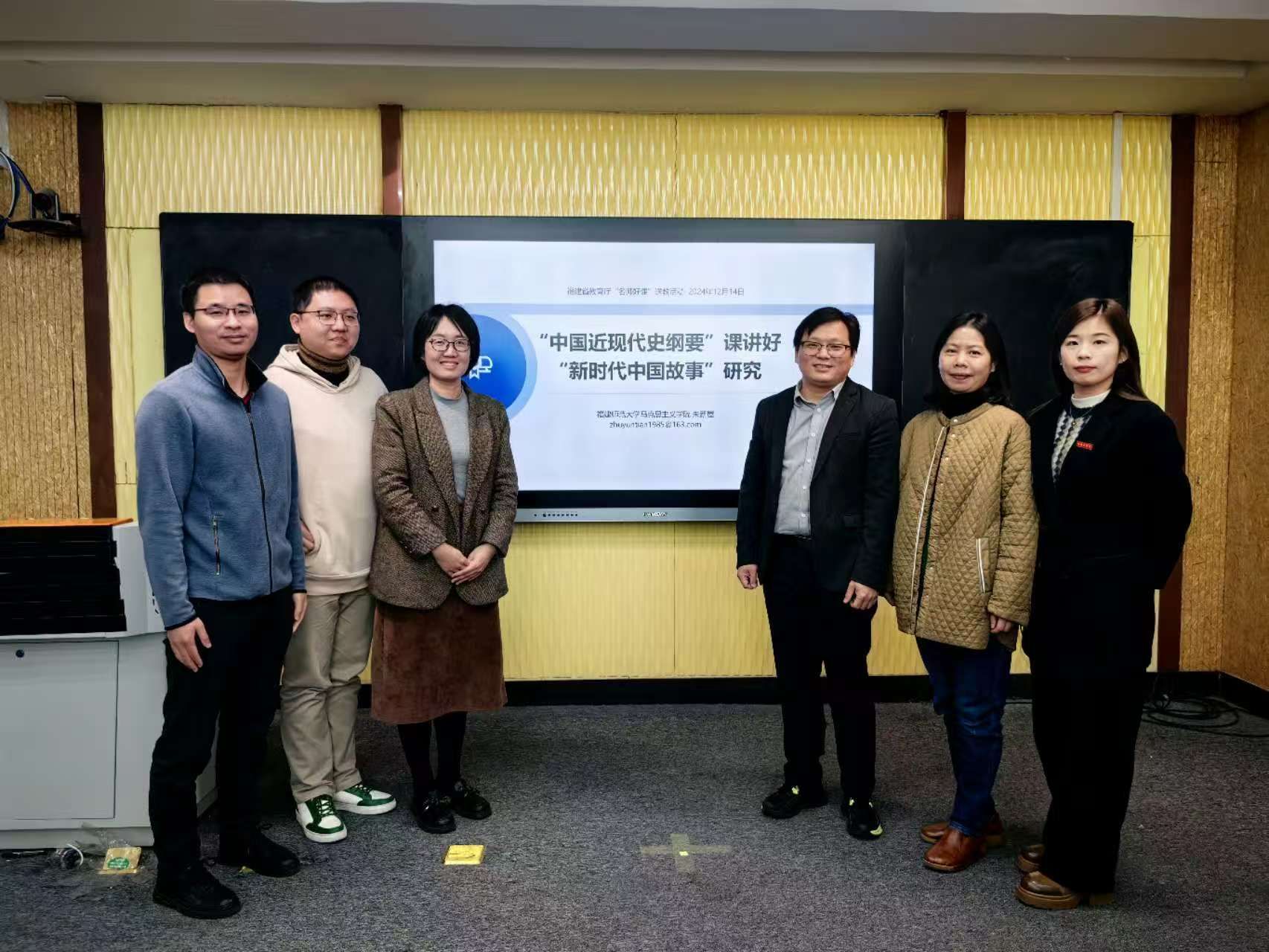 此前,12月14日,在由全国高校思政课“手拉手”集体备课中心(福建师范大学-福建省)主办,福州外语外贸学院世界杯体育官方网站、福建师范大学世界杯体育官方网站李颖名师工作室承办的集体备课会上,朱新屋老师以“‘中国近现代史纲要’课讲好‘新时代中国故事’研究”为题开设教学专题讲座。讲座分别从“‘头重脚轻’:一个被低估的学术难题”“把‘新时代’对象化:文献与事件”“重构教学体系:从中国道路到中国道理”等三个方面,就“中国近现代史纲要”课讲好“新时代中国故事”的价值意义、学理支撑和实践路径进行了深入分析。世界杯官网中国近现代史纲要教研部全体教师参加了活动。