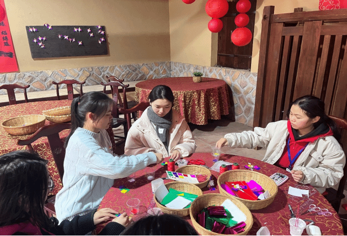 体验制作妈祖花,是实践队此行最绚烂的风景。巧手翻飞间,精致绚烂的纸花在指尖绽放,如希望之花照亮心灵。这些纸花不仅是传统技艺的璀璨结晶,更是民族情感的牢固纽带,将人们与妈祖文化紧密相连,感受血脉深处的文化共鸣。