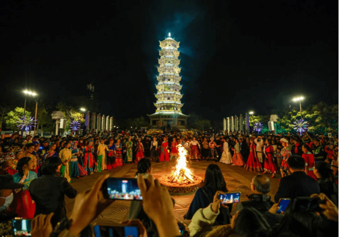 实践队员们在这里不仅大饱眼福,更是亲身参与其中。趣味横生的猜灯谜,让大家在欢声笑语中领略了传统文化的智慧与魅力;悠扬婉转的十音八乐,如同天籁之音,让人沉醉其中,久久不愿离去。夜幕降临时,篝火晚会点燃了大家的热情,火光映照下的笑脸洋溢着幸福与欢乐。而灯塔秀则以现代科技手段,将传统故事娓娓道来,让人耳目一新。