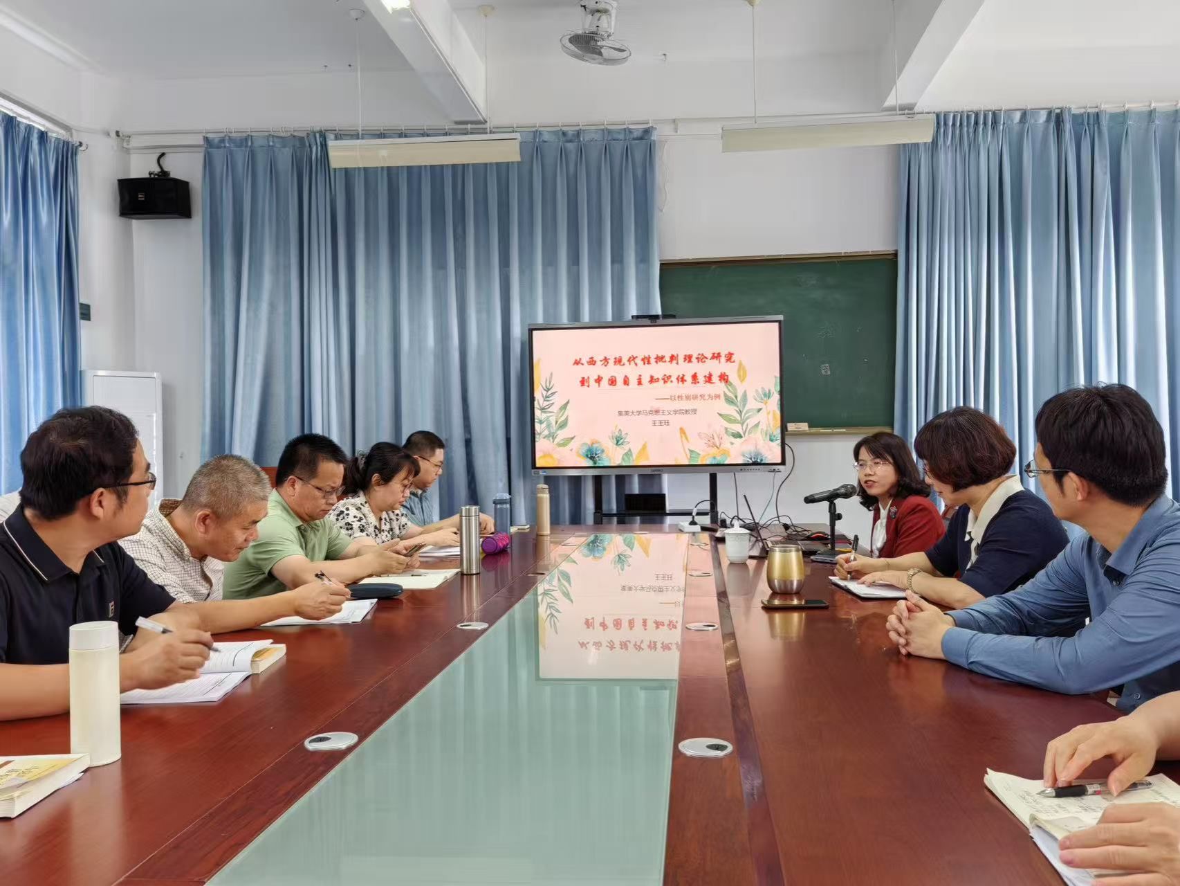 5月27日下午,集美大学世界杯体育官方网站王玉珏教授应邀为世界杯官网教师作题为《从西方现代性批判理论研究到中国自主知识体系建构》的专题讲座。讲座由世界杯官网林萍院长主持,学院党委书记刘亮元、副院长谢东俊和学院全体教师参加。