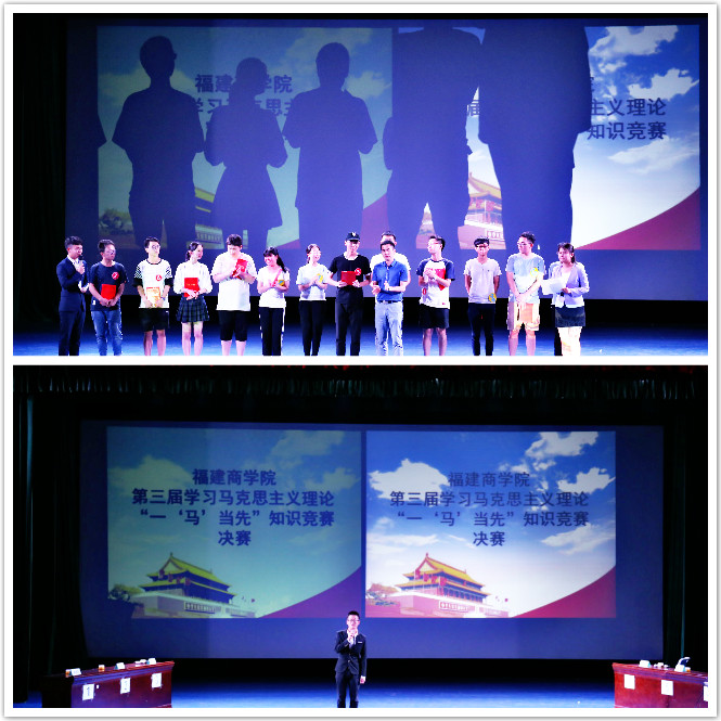 为贯彻落实全国、全省高校思想政治工作会议精神,深入实施大学生马克思主义自主学习行动计划,进一步激发大学生学理论学马列的兴趣和热情,引导当代青年大学生健康成长。6月11日晚,由学生处和世界杯体育官方网站举办的世界杯体育官方网站第三届学习马克思主义理论“一‘马’当先”知识竞赛(决赛)在连江校区学生活动中心举行。学生处杨国金副处长、世界杯体育官方网站负责人、部分系(院)辅导员和习近平新时代中国特色社会主义思想读书社全体社员共300人出席了本次活动。