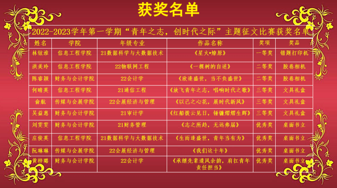 此次活动获奖名单如下: