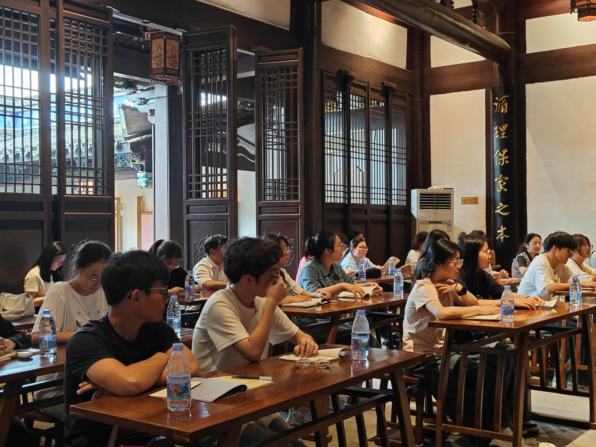 4月22日下午,50余名师生走进亭江镇长柄村龙津书院,围绕《习近平文化思想学习纲要》,通过青年领学、阅读分享、读书倡议、知识竞答等活动,营造书香校园的浓厚氛围。结合自身经历,多形式开展了阅读分享和感悟。六位社员担任本次读书活动的“领读人”,带领社员们一同品读经典,展开交流探讨。他们有的精选《习近平文化思想学习纲要》中的精华语句进行阅读分享;有的以习近平文化思想为指引,深入剖析“中华优秀传统文化”与大学生的紧密联系,重新认识传统文化对塑造自我、追求人生价值的重要意义;有的讲述革命先烈故事,感受革命文化里浓浓的爱国主义情怀;有的推荐了自己喜欢的文化作品,让大家感受文化创造性转换的魅力、感悟文化对心灵和精神的慰藉……现场社员们也纷纷从书本谈论到实际,从篇章谈论到生活,分享着各自读书的乐趣,并表示,要从书籍中汲取文化力量,丰盈精神世界。