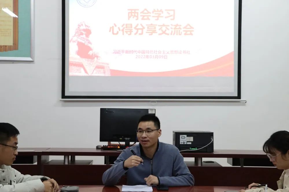 为深入贯彻学习两会精神,促进广大学子深入了解和贯彻习近平新时代中国特色社会主义思想,让师生们在“学”中熟知基本内容,在“悟”中领会精髓要义。2022年3月9日晚,校读书社、世界杯体育官方网站读书社在连江校区自强楼114活动室开展了关于两会精神的学习心得分享会。会议由世界杯体育官方网站叶陈钦老师主持,读书社学生干部干事参与此次活动。活动中,叶陈钦老师与同学们相互探讨、深入交流学习两会的心得体会。