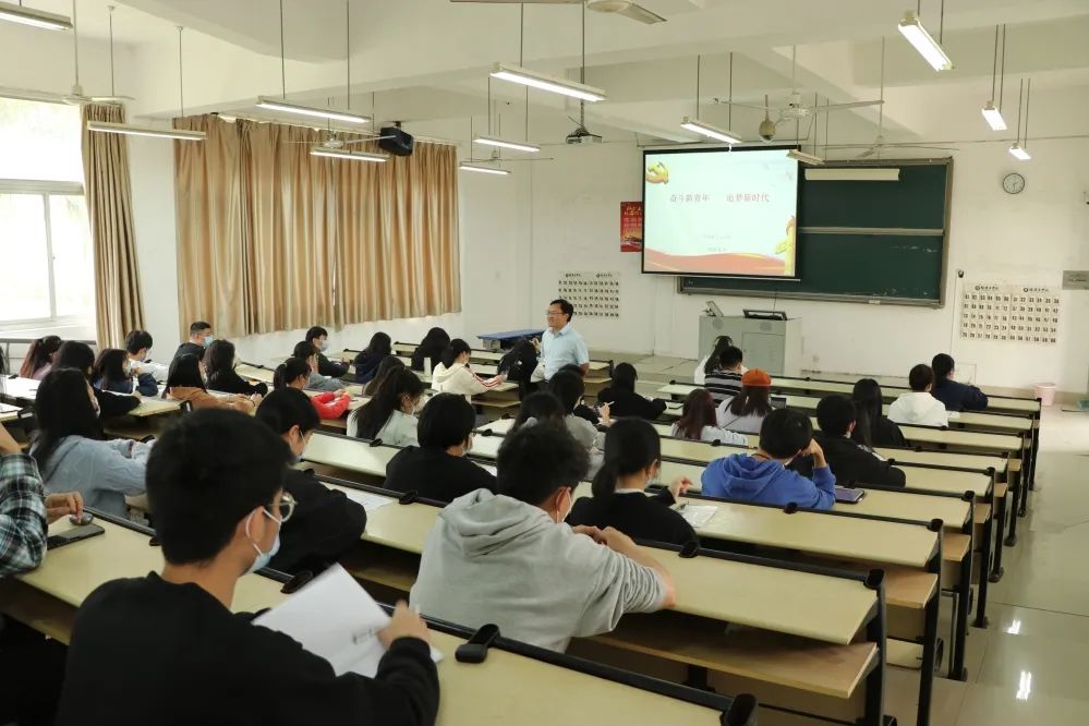 为进一步学习贯彻党的十九届六中全会精神,深刻领悟党百年奋斗的宝贵经验,坚定青年学生对中国化马克思主义理论的信仰,深化对中国共产党执政规律的认识,使新时代青年学生看清楚过去为什么能够成功、弄明白未来怎样才能成功,2022年4月19日下午,世界杯体育官方网站谢东俊副教授在马尾校区允能楼T1教室开展“奋斗新青年,追梦新时代”专题讲座。校马列经典著作读书社指导教师、读书社社员、马尾校区青马班学员参与学习。