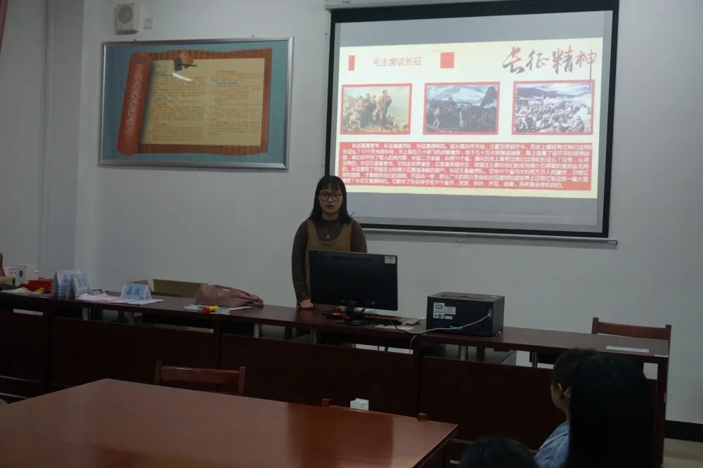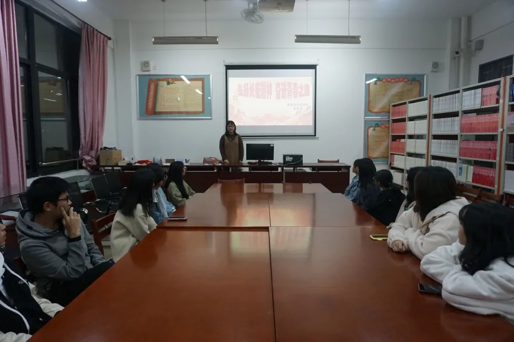 2021年11月10日晚,校读书社社员翁有恩同学在自强楼114活动室开展了题为“弘扬长征精神,奋进青春之路”的宣讲,读书社部分社员参与此次活动。