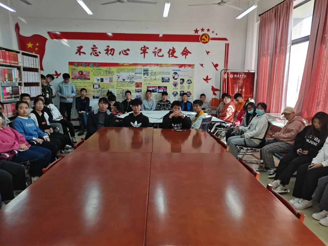校读书社近期持续开展“齐学‘四史’担使命,共话脱贫奔小康”主题宣讲活动,本次由王思平、何国华、林亦诚、赖玮彪四位同学宣讲,读书社第二组、第八组等小组社员参加学习。
