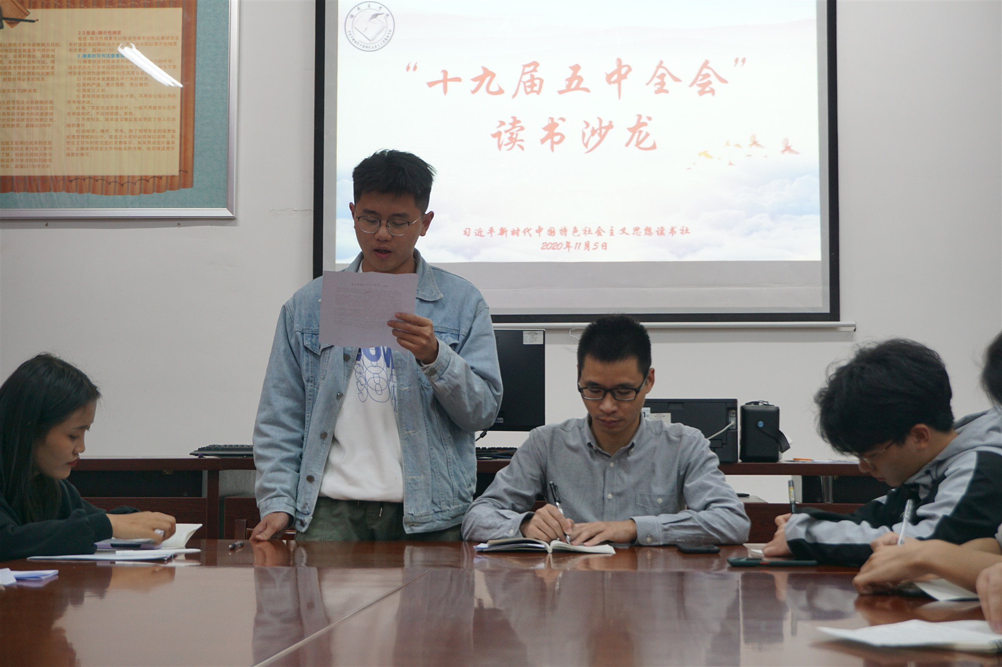 10月26日至29日,十九届五中全会在北京举行,全会在世界杯官网师生间引发强烈反响。近期,校习近平新时代中国特色社会主义思想读书社师生学习热议党的十九届五中全会精神,并通过读书沙龙、主题研讨等形式交流、分享学习心得。