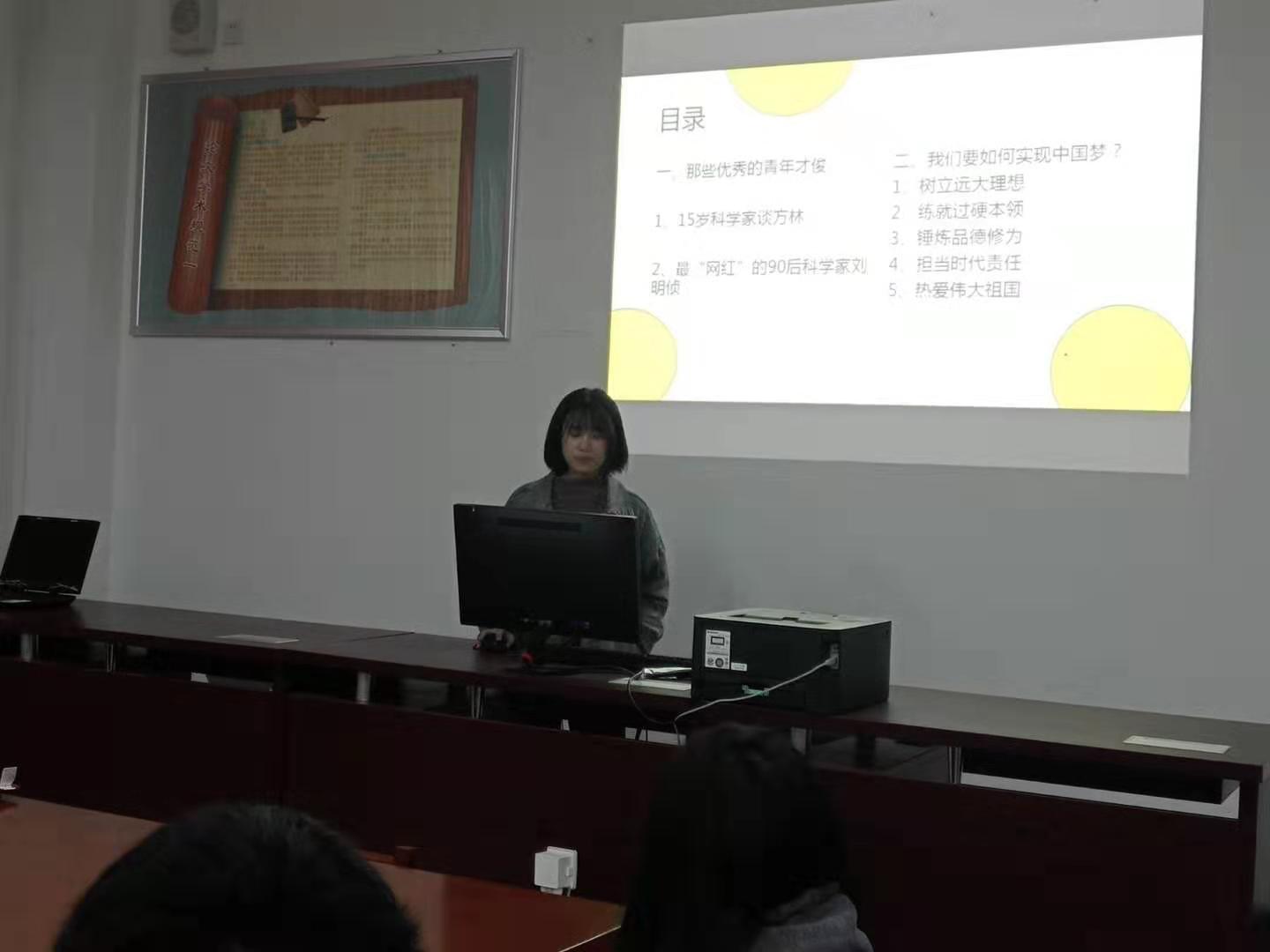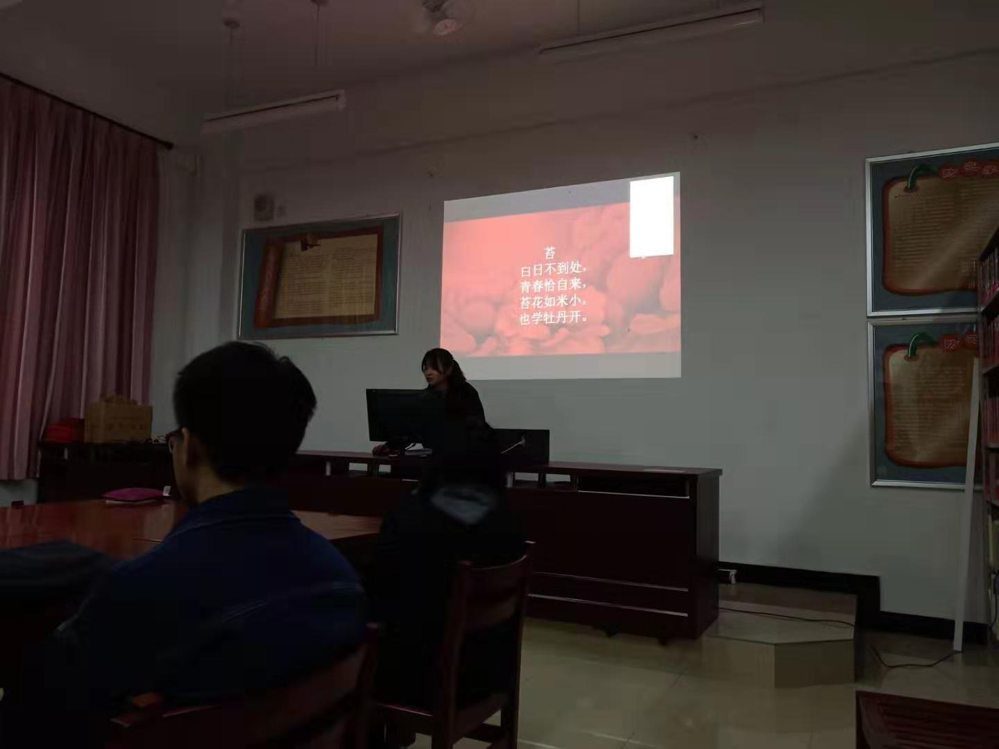 2019年12月5日晚,习近平新时代中国特色社会主义思想读书社在自强楼活动室开展以“青春献祖国 奋斗新时代”为主题的宣讲活动,这次活动由读书社林灵淇、廖月两位同学进行宣讲,读书社第二十组成员参加了此次学习。