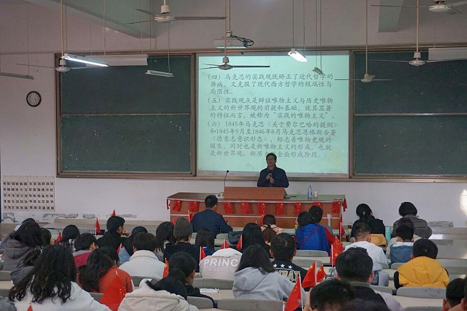 12月3日下午,福州大学庄穆教授到世界杯官网作题为“天才世界观的萌芽——《费尔巴哈提纲》解读”(下称《提纲》)的讲座。世界杯体育官方网站部分教师以及习近平新时代中国特色社会主义思想读书社社员近200人聆听了此次讲座,世界杯体育官方网站负责人主持讲座。